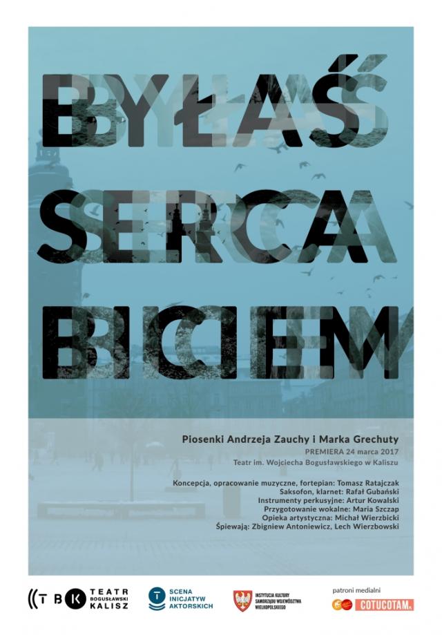 Byłaś serca biciem. Piosenki Andrzeja Zauchy i Marka Grechuty to muzyczna podróż śladami dwóch wielkich artystów polskiej piosenki. Nieoczywiste zestawienie tak różnych twórczości nie jest przypadkowe. Dwie osobowości muzyki powrócą na scenę dzięki dwóm artystom teatru. Głosami aktorów kaliskiego zespołu – Zbigniewa Antoniewicza i Lecha Wierzbowskiego – oraz w towarzystwie nowych aranżacji muzycznych wybrzmią wszystkie odcienie miłości! Zapraszamy na wieczór pełen emocji, wzruszeń i piosenki najwyższej próby.