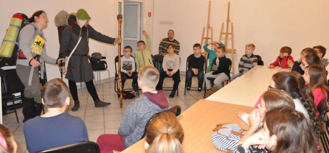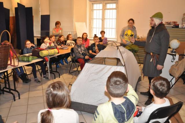 "Trzeci dzień to podróż w czasie i przestrzeni. 'Plecak pełen skarbów - niezbędnik małego podróżnika' - nasi młodzi uczestnicy zapoznali się z wyposażeniem podróżnika z czasów średniowiecza oraz XXI wieku. Dzięki porównaniu ekwipunku zobaczyli różnice oraz podobieństwa podróżowania - dawniej i dziś, a także uczyli się tropów zwierząt oraz ciekawostek o o nich. W tę niezwykłą przygodę uczestników naszych ferii wzięli Magda oraz Michał, na co dzień pracujący w naszym oddziale - Rezerwacie Archeologicznym w Kaliszu-Zawodziu.