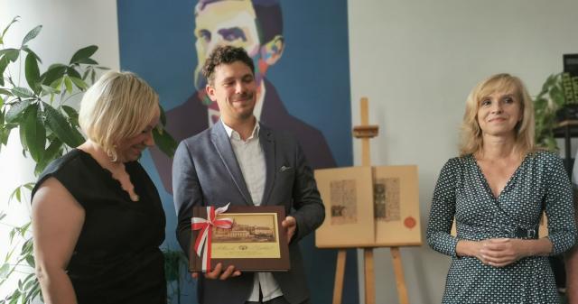 na fot.: Aleksandra i Dawid Koenig oraz Robert Kuciński/dyrektor MBP w Kaliszu