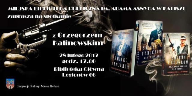Miejska Biblioteka Publiczna im. Adama Asnyka w Kaliszu zaprasza na spotkanie z pisarzem Grzegorzem Kalinowskim, autorem powieści „Śmierć frajerom”. Spotkanie odbędzie się we wtorek – 28 lutego o 17:00 w Bibliotece Głównej przy ul. Legionów 66. Wstęp wolny.