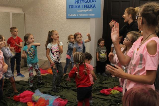 A dzieciaki zawładnęły budynkiem Centrum Kultury i Sztuki przy Łaziennej 6, bo zajęcia odbywały się nie tylko w sali studio. Wspólne animacje, zajęcia ruchowe i kreowanie bajkowych światów wypełniły uczestnikom 4 godziny wspólnej, bajkowtorkowej zabawy.
