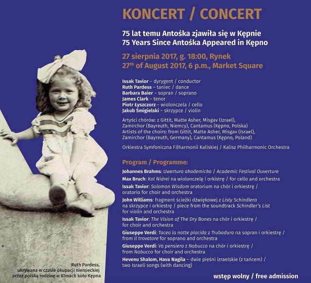 Inspiracją Festiwalu jest historia kępnianina – Alojzego Plewy, Sprawiedliwego wśród Narodów Świata, który podczas wojny uratował z getta dwuletnią żydowską dziewczynkę – Ruth Pardess, nazwaną później Antośką. Od tamtej chwili mija 75 lat: dziś pani Pardess jest cenioną izraelską artystką, która odwiedzi Kępno i weźmie udział w wielu specjalnych wydarzeniach. W bogatym programie Festiwalu znalazły się m.in. warsztaty tańca, wernisaż wystawy związanej z Alojzym Plewą i międzynarodowa konferencja naukowa na temat historycznych uwarunkowań zmian kulturowych. Jednak największym wydarzeniem artystycznym Festiwalu będzie niedzielny koncert na kępińskim rynku (27 sierpnia), w którym wystąpią połączone chóry z Izraela, Niemiec i Polski. Ponad 100 artystów zaśpiewa przy akompaniamencie Orkiestry Symfonicznej Filharmonii Kaliskiej pod dyrekcją Issaka Taviora, wybitnego izraelskiego dyrygenta, kompozytora i pianisty. Wstęp na wszystkie wydarzenia festiwalowe jest bezpłatny.