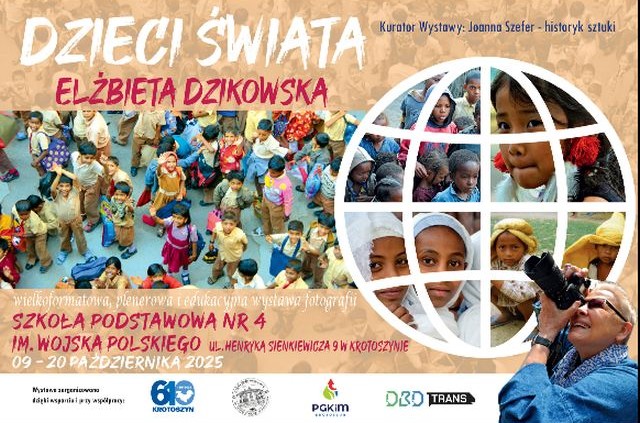 Wielkoformatowa i edukacyjna wystawa fotografii Elżbiety Dzikowskiej, znanej podróżniczki i dziennikarki, prezentowana jest na terenie Szkoły Podstawowej nr 4 im. Wojska Polskiego w Krotoszynie. Ekspozycja ukazuje dzieci z różnych zakątków świata – od Azji, przez Afrykę, po Amerykę Łacińską – uchwycone w codziennych sytuacjach, często w trudnych warunkach życia.