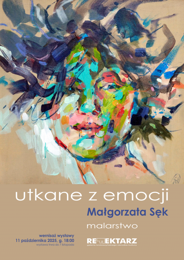"Małgorzata Sęk jest twórcą rozpoznawalnym ze swojego ekspresyjnego przedstawiania świata kobiecych emocji. Wystawa malarstwa Małgorzaty Sęk to pełna ekspresji podróż przez świat kobiecości, natury i emocji. Artystka operuje intensywnym kolorem, plamą i linią, tworząc kompozycje nasycone symboliką i uczuciem. Obrazy zarówno w dużych, jak i mniejszych formatach – przepełnione są kobiecymi twarzami, organicznymi kształtami oraz odniesieniami do świata przyrody" - powiedziała radiuCENTRUM Zuzanna Kozina-Błauciak, dyrektor Krotoszyńskiego Ośrodka Kultury.