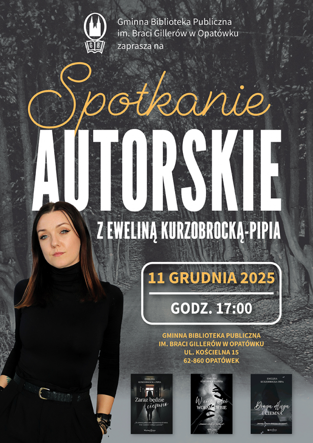 Gminna Biblioteka Publiczna im. Braci Gillerów zaprasza na kolejne spotkanie autorskie. Już w czwartek placówka będzie gościć pisarkę Ewelinę Kurzobrocką- Pipię.