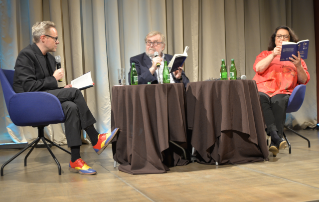 Spotkanie prowadził autor książki „Wpadnij, to pogadamy” Łukasz Maciejewski, który pytał gości również o ich spojrzenie na aktorstwo.