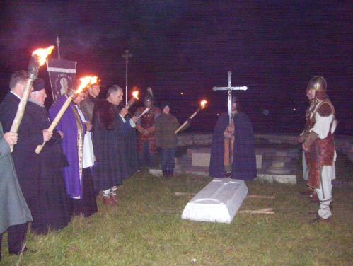 Za nami kolejne Zaduszki na kaliskim Zawodziu. 2 listopada w kościele św. Wojciecha odprawiono mszę św. w intencji wszystkich zamieszkujących niegdyś Kaliski Gród Piastów i jego okolice. Potem w procesji z pochodniami rycerze św. Wojciecha zanieśli na teren dawnej kolegiaty św. Pawła replikę płyty nagrobnej księcia Mieczysława Starego. W wydarzeniu brali udział goście przybyli z Wielunia: Bogusław Abramek i Janusz Antczak. Obaj reprezentują najwyższe władze Stowarzyszenia Polski Szlak Bursztynowy i z zapałem uczestniczą we wszystkich wydarzeniach związanych z "bursztynową" przeszłością Kalisza.