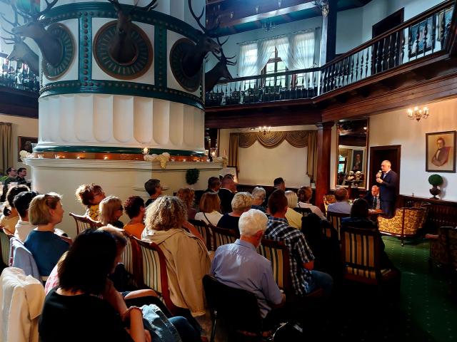 „Była chwila czasu, to zapytałem, czy chcą zobaczyć pomnik Ferdynanda Radziwiłła. On jest schowany w lesie, taki niepozorny koło tartaku w Antoninie. Postawiono go w 1924 roku na 90-lecie jego urodzin i 60-lecie pożycia małżeńskiego, jak jest napisane na tym pomniku, z Pelagią Sapieżanką posadzono aleję dębów. Dęby do dzisiaj stoją, Radziwiłłom też je pokazałem. Miałem wielką satysfakcję, że prawnukom Ferdynanda Radziwiłła pokazałem pomnik ku czci ich pradziadka, o którym nie wiedzieli” - powiedział radiuCENTRUM Paweł T. Dolata, jeden z przewodników po wystawie pamiątek Radziwiłłów.