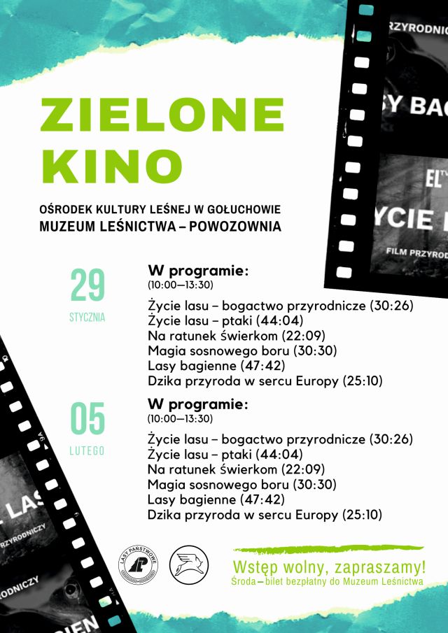 Bezpłatne seanse w Zielonym Kinie w dwie kolejne środy - 29 stycznia i 5 lutego przygotował Ośrodek Kultury Leśnej w Gołuchowie. W tych dniach także bez opłat dostępne dla zwiedzających będą również wystawy czasowe i stałe w Muzeum Leśnictwa.