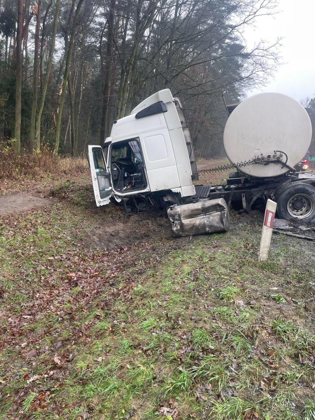 "Na miejscu policjanci ustalili, że 32-letni mieszkaniec powiatu kaliskiego, kierujący samochodem osobowym marki Fiat Bravo, z nieustalonych przyczyn zjechał na przeciwny pas ruchu i doprowadził do czołowego zderzenia z cysterną przewożącego mleko, którą kierował 66-letni mężczyzna. W wyniku zdarzenia śmierć na miejscu poniósł kierujący samochodem osobowym" - powiedziała radiuCENTRUM asp.szt. Monika Lis-Rybarczyk, oficer prasowa pleszewskiej policji.