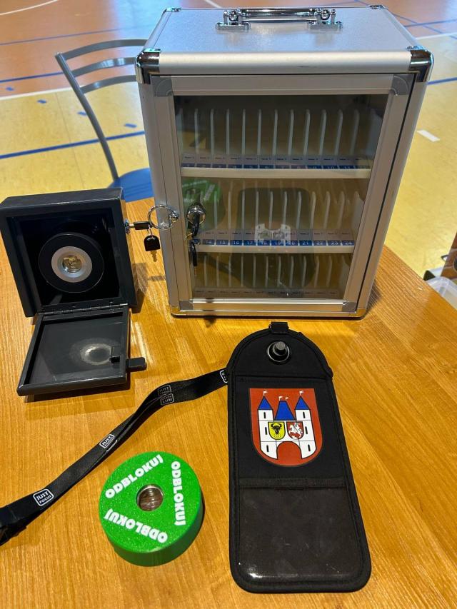 Specjalne saszetki z herbem gminy, już w maju, otrzymają uczniowie klas 4–8, a ich zakup sfinansuje gmina. Po wejściu do szkoły telefony będą wkładane do etui, które odcina dostęp do sieci GSM, Wi-Fi i Bluetooth. Odblokowanie będzie możliwe tylko przez nauczyciela lub przy wyjściu z budynku po lekcjach. W przypadku uczniów klas 1–3, którzy mają lekcje w jednej sali, planowany jest zakup skrzynek, do których dzieci będą odkładać swoje telefony na czas zajęć.