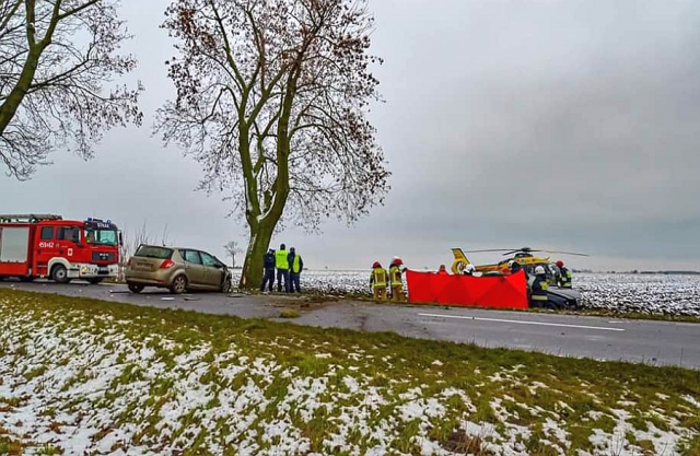 Śmiertelny wypadek na drodze Żerków - Chrzan w powiecie jarocińskim. W niedzielne popołudnie doszło tam do czołowego zderzenia dwóch samochodów osobowych. Ze wstępnych ustaleń policji wynika, że 56-letni kierowca Mercedesa z nieustalonych dotąd przyczyn zjechał na przeciwległy pas, zderzył się z jadącym z przeciwka samochodem Kia, a następnie uderzył w drzewo. Kierowca Mercedesa - mieszkaniec gminy Żerków zginął na miejscu. Drugim pojazdem podróżowały trzy osoby: 61-letni mężczyzna, 58-letnia kobieta oraz 5-letnie dziecko - mieszkańcy powiatu śremskiego. Ranne dziecko przetransportowano śmigłowcem LPR do szpitala w Ostrowie Wielkopolskim, natomiast dwójka poszkodowanych dorosłych trafiła do jarocińskiego szpitala. Policja ustala okoliczności tragicznego wypadku.