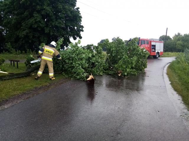 "Zgłoszenia dotyczyły głównie zalanych piwnic, tych było około 30. Dodatkowo jeździliśmy połamanych drzew - około 10 wyjazdów. Dzisiejszej nocy piorun uderzył też w komin, a także w altankę w miejscowości Korab (gm. Blizanów)".