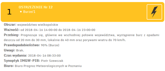 Ostrzeżenia dla wschodniej Wielkopolski z Instytutu Meteorologii i Gospodarkii Wodnej. Oto co przewiduje na dzisiejsze popołudnie serwis pogodynka.pl: