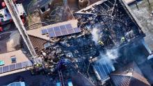 na fot.: palący się budynek z góry