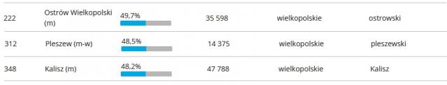 Pierwsze miejsce w naszym regionie zajmuje Ostrów Wielkopolski z wyszczepieniem na poziomie 49,7%, na drugim zaś miejscu plasuje się Pleszew z poziomem 48,6%. Na "pudle" znalazł się też Kalisz z poziomem 48,1% pełnego wyszczepienia. I są to wyniki lepsze, niż średnia krajowa, gdzie według danych Ministerstwa Zdrowia w całym kraju w pełni zaszczepionych jest 46,7% całej populacji.