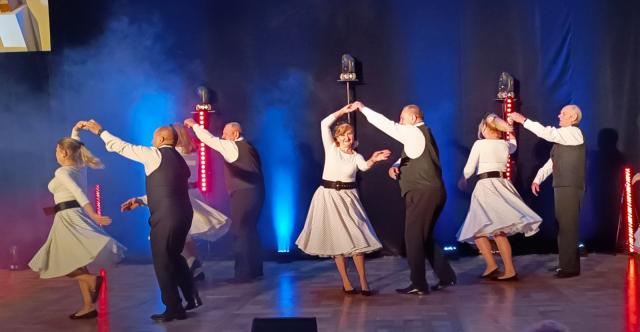 "Jeśli chodzi o nasz ostatni program, czyli lata 50 i 60 to stroje są w stylu amerykańskim i europejskim, ale z czasów, kiedy obecni emeryci byli dziećmi lub bardzo młodymi ludźmi i pamiętają tę modę. To są spódnice na bardzo szerokich halkach, które można jeszcze kupić. W jakieś groszki, kropki, kwiatki. Je wykorzystujemy do cza-czy, jive, też trochę do folku związanego z rock & rollem" - dodała Barbara Marcinkowska.
