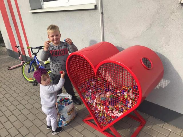 Czerwone serce, które wypełniają setki nakrętek, stoi tuż przed budynkiem remizy w Stawiszynie, przy pomniku św. Floriana. Na pomysł, by w ten sposób pomoc Sandrze Wolniak wpadli druhowie z OSP Stawiszn. Ale to nie jedyne otwarte serce dla chorej dziewczynki w powiecie kaliskim. Do akcji włączyli się także druhowie z OSP Zbiersk. Pojemnik pojawił się również w Rychnowie.