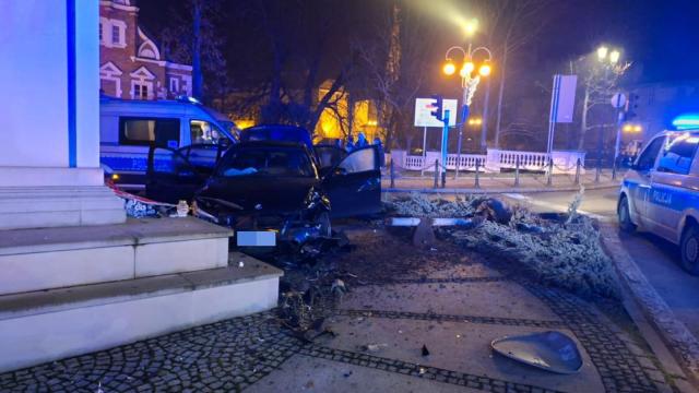Skosił słup, murek i zatrzymał się dopiero… na marszałku Piłsudskim. W nocy z piątku na sobotę na Alei Wolności w Kaliszu doszło do zdarzenia drogowego z udziałem BMW. Auto osobowe prowadzone przez 23-letniego kierowcę uderzyło w słup oświetlenia ulicznego, znak drogowy i murek tuż przed pomnikiem.