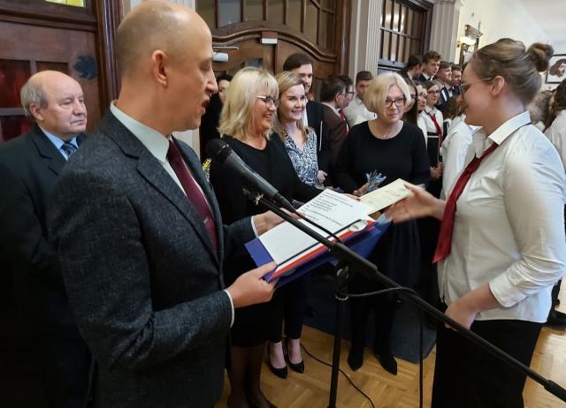 na fot.: Zuzanna van Diepen / uczennica klasy pierwszej; dr Sławomir Przygodzki / historyk w III LO i regionalista