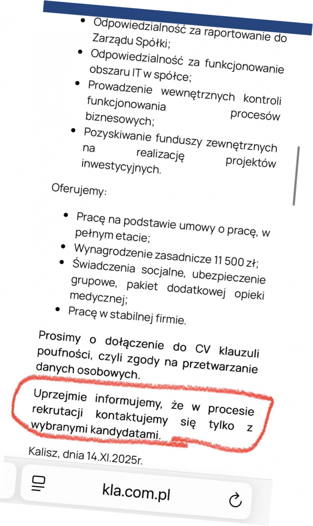 Kluczowe w ogłoszeniu wydaje się jednak ostatnie zdanie (zaznaczone przez nas kolorkiem), gdyż podobno (i w zasadzie) już wiadomo kim będzie Nowa PANI DYREKTOR. Czy to prawda, będziemy pytać znanych działaczy PiS z Kalisza: Sławomira Lasieckiego & Błażej Wojtyłę. Intuicja podpowiada, że być może jakąś wiedzę na ten temat może mieć zatrudniony przecież nie tak dawno także w spólce KLA Wincenty Nowak.
