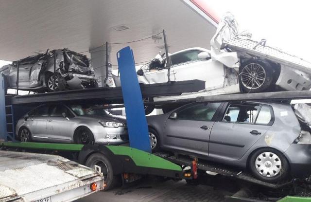 "Jak się okazało, zniszczeniu doszczętnie uległy dwa pojazdy znajdujące się na górnej części lory - czyli platformy do przewozu pojazdów. Zniszczeniu uległa również sama lora, a co za tym idzie uszkodzony został też pojazd znajdujący się na dolnej kondygnacji tej lory. Kierowcą okazał się 28-latek, mieszkaniec województwa podlaskiego. Mężczyzna został ukarany mandatem w wysokości 1000 złotych" - powiedział radiuCENTRUM asp. Witold Woźniak z kaliskiej policji.