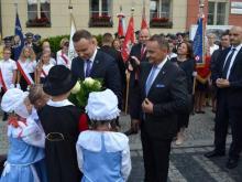 Spotkanie z samorządowcami, przedsiębiorcami oraz mieszkańcami regionu - to główne punkty poniedziałkowej wizyty prezydenta Andrzeja Dudy w Kępnie. To była pierwsza od ponad 90 lat wizyta głowy państwa w tym mieście. Prezydent chwalił wielkopolską gospodarność, najniższe w kraju bezrobocie, które - jak podkreślał - nie są wynikiem działań władz, ale przedsiębiorczości mieszkańców.