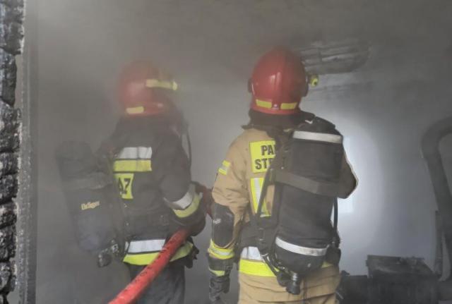 "Po zakończonej rewizji mieszkania nadpalone elementy wyposażenia zostały usunięte na zewnątrz i dogaszone. Z uwagi na łatwopalną konstrukcję stropu budynku wykonanego z trzciny, celem całkowitej eliminacji zagrożenia pożarowego dokonano częściowej rozbiórki elewacji wewnętrznej uwidaczniając drewniane elementy konstrukcyjne" - dodał st. asp. Mateusz Dymarski.