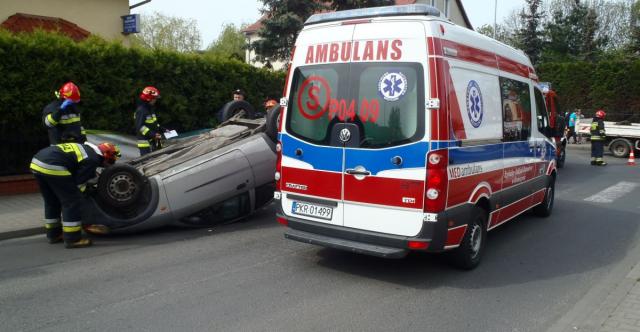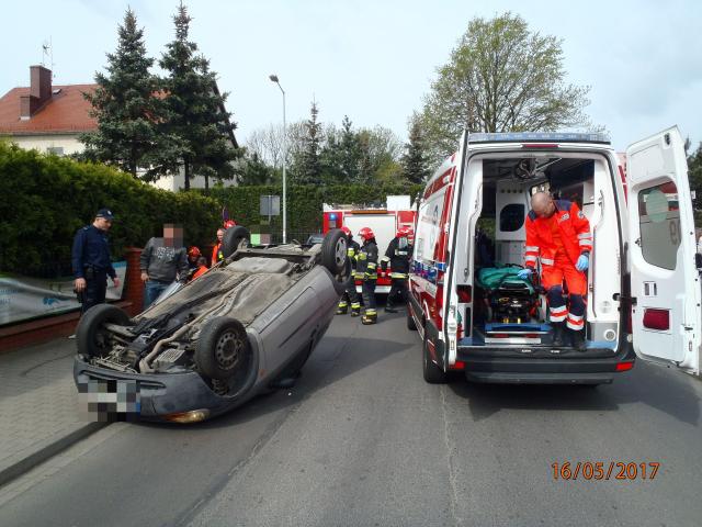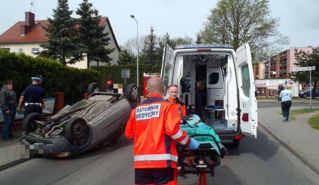 Osobowe auto dachowało we wtorkowy poranek na ulicy Tartacznej w Krotoszynie. Dwie osoby podróżujące fordem Ka samodzielnie wydostały się z rozbitego auta, jednak kierująca uskarżała się na złe samopoczucie. Pierwszej, kwalifikowanej pomocy medycznej, polegającej na stabilizacji odcinka szyjnego kręgosłupa za pomocą kołnierza ortopedycznego, udzielili poszkodowanej strażacy.