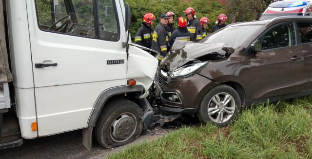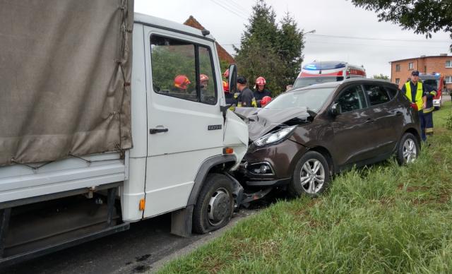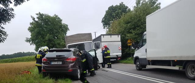 Do czołowego zderzenia samochodu osobowego z samochodem dostawczym doszło w środowe popołudnie w Lezionie w gminie Nowe Skalmierzyce.