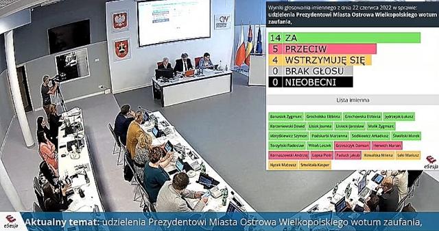 Obydwa kluby nie wprowadziły dyscypliny w głosowaniu nad wotum zaufania, co odbiło się na wynikach. 14 radnych opowiedziało się za wotum zaufania dla prezydent Klimek, w tym dwóch radnych PiS, przeciwko było czworo – 3 osoby z klubu PO i jedna z PiS, a czworo radnych wstrzymało się od głosu – w tym troje radnych PO i radny niezrzeszony.