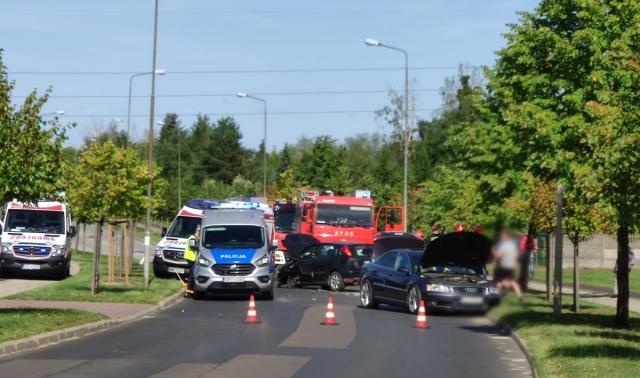 W zdarzeniu brały udział Audi i Ford Focus. Na miejscu pracują służby ratunkowe - 2 zastępy straży pożarnej, policja i Zespół Ratownictwa Medycznego.