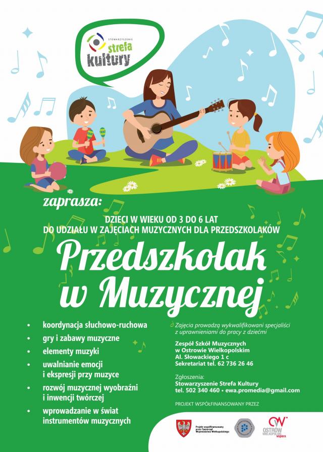 „Przedszkolak w Muzycznej” to pomysł ostrowskiego Stowarzyszenia Strefa Kultury, w którym zajęcia szeroko rozumianej rytmiki prowadzone dla dzieci w wieku od 3 do 7 lat prowadzą wykwalifikowani nauczyciele Zespołu Szkół Muzycznych w Ostrowie Wielkopolskim. Podczas zajęć dzieci poznają instrumenty muzyczne, ucząc przy tym prawidłowych reakcji ruchowych na bodźce dźwiękowe i pozwalając na indywidualną ekspresję.