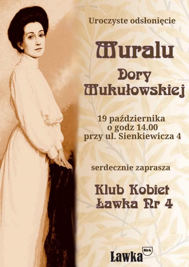 W niedzielę, 20 października, o godzinie 14:00 na murze kamienicy przy ulicy Sienkiewicza w Pleszewie zostanie odsłonięty mural upamiętniający Dorę Mukułowską – malarkę i uczestniczkę powstania wielkopolskiego, urodzoną w 1880 roku w pałacu w Kowalewie.