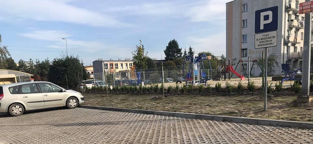 Budowę miejsc postojowych sfinansowała spółdzielnia mieszkaniowa. Na skarpie pomiędzy placem zabaw i miejscami postojowymi posadzono nowe krzewy.