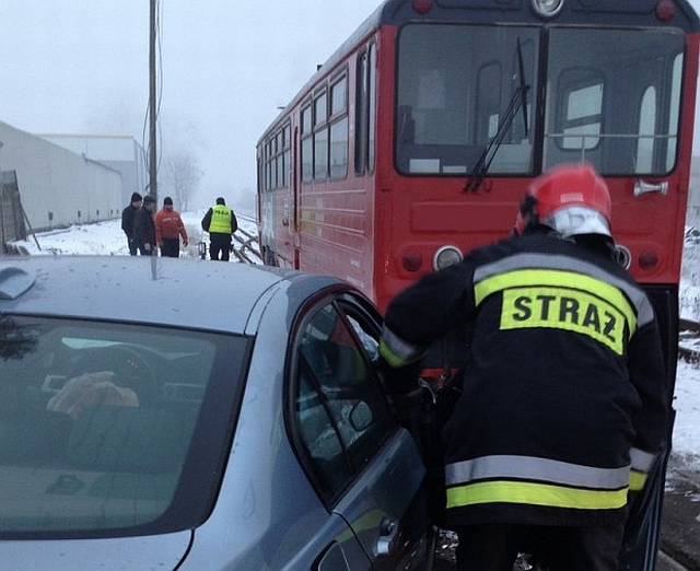 Do zderzenia osobowego BMW z kolejką wąskotorową doszło na ulicy Targowej w Pleszewie. Na szczęście kolejka nie przewoziła w tym momencie pasażerów, ale ranny został kierowca BMW, który na zachował należytej ostrożności na przejedzie.