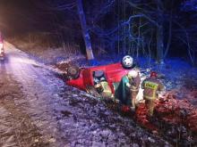 Dachowanie z finałem w przydrożnym rowie. Do zdarzenia doszło w środę po godzinie 2-ej w nocy w miejscowości Zaleśna w gminie Brzeziny. Ucierpiała jedna osoba. Na miejsce wysłano służby ratunkowe. O szczegółach powiedział powiedział radiuCENTRUM mł. kpt. Szymon Zieliński, oficer prasowy kaliskiej straży pożarnej: