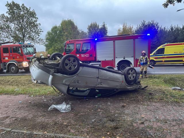 Dachowanie na trasie Kalisz - Pleszew. Informację o zdarzeniu dyżurny pleszewskiej PSP odebrał w piątek, 10 października, tuż po godzinie 7:00 rano.