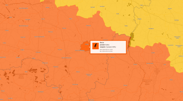 Ostrzeżenie drugiego stopnia dotyczy m.in. Kalisza, powiatów kaliskiego, ostrowskiego, pleszewskiego, krotoszyńskiego czy ostrzeszowskiego.