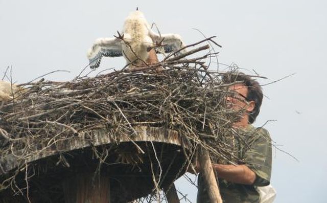 Pierwsze zwiastuny wiosny, takie najbardziej wyraźne, to są oczywiście bociany białe, a potem dopiero będą jaskółi, bo ludowe porzekałdo mówi, że to bocian na ogonie jaskółkę przynosi."