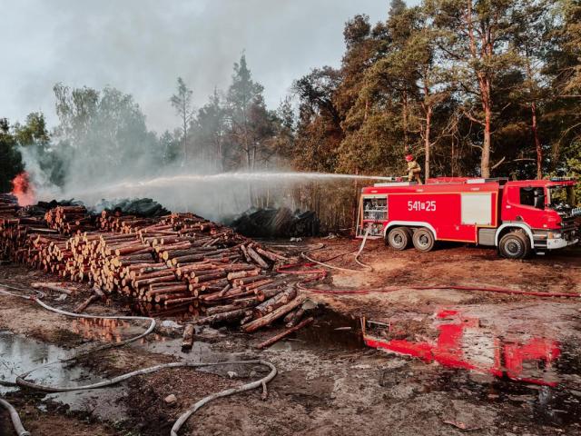 Trwa akcja gaśnicza ogromnego pożaru składowiska drewna w powiecie ostrzeszowskim. Informacje o pojawieniu się ognia w miejscowości Salomony dyżurny ostrzeszowskiej straży pożarnej otrzymał w poniedziałek około godziny 1:00 w nocy. Na miejsce wysłano kilkanaście zastępów pożarników. Z żywiołem walczyło ponad 20 jednostek z powiatu ostrzeszowskiego, w tym 2 jednostki z województwa łódzkiego.