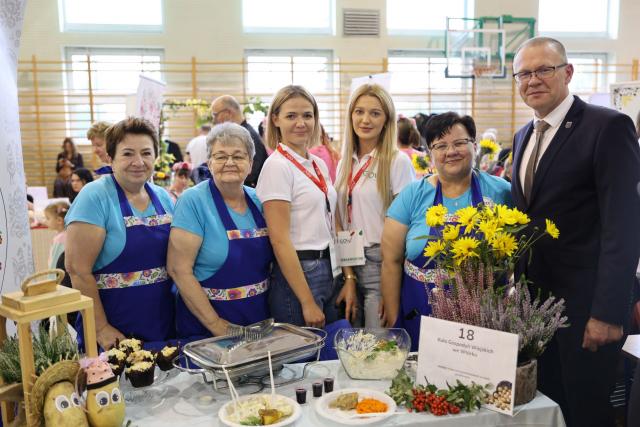 „Jesteśmy z KGW Radziwilłów, przygotowałyśmy na dziś ziemniaczane zapiekanki, czyli kuleczki zapiekane z brokułem i mielonym mięsem. Jesteśmy KGW Jaźwinów i przywiozłyśmy ziemniaczane ślimaki jaźwińskie. To nasze tzw. zaguby z farszem z ziemniaka tartego na drobnych oczkach, przesmażony z cebulką, a do tego sól, pieprze i majeranek”.