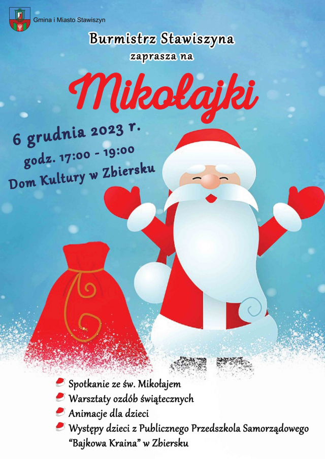Mikołajki odbędą się w Domu Kultury w Zbiersku (gm. Stawiszyn). Atrakcje będą czekać na najmłodszych w godz. od 17:00 do 19:00.