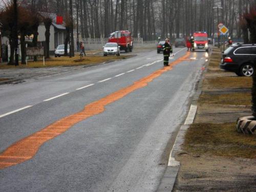 Przez prawie 2 godziny w czwartek strażacy usuwali plamę oleju w Sumierzycach. Plama, która zagrażała bezpieczeństwu na drodze ciągnęła się prawie przez całą miejscowość: