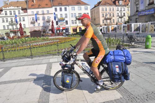 „Zacząłem w Gdańsku w Boże Ciało o godzinie 12:00. Przejechałem przez ważniejsze miasta: Grudziądz, Toruń, Chełmno, Konin. Jestem zaopatrzony przez Urząd Miejski w bardzo dużo gadżetów reklamujących Kalisz i rozdawałem je między innymi Japończykom. Nasze breloczki, odznaki zawędrują niedługo do Japonii. Założyłem, że do Wenecji i z powrotem będzie ok 3000 kilometrów. Mam ze sobą wszystko, co jest niezbędne."