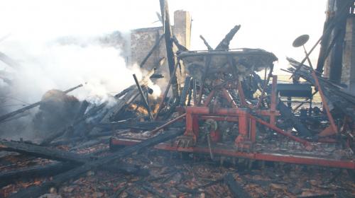"Pożar objął powierzchnię wielkości 600 metrów kwadratowych. Spaleniu uległy: agregat prądotwórczy, siewnik, rozsiewacze do nawozu, przetrząsarka do siana i około 800 balotów słomy. W akcji brały udział jednostki z Krotoszyna, Kobylina i Zdun, łącznie 17 pojazdów i 94 strażaków".