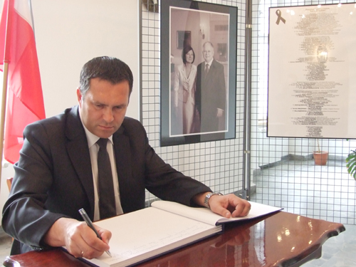 W niedzielę w ratuszu została wystawiona księga kondolencyjna. W sobotę jako pierwszy wpisał się burmistrz Jarocina, Adam Pawlicki: „Panie Prezydencie! Z najważniejszymi osobami w naszym Kraju, poleciał Pan złożyć hołd ofiarom mordu bolszewickiego. Wraz z małżonką i elitą naszego kraju złożył Pan najwyższą ofiarę - ŻYCIE. Osierociliście Naród Polski. Pozostanie po Was olbrzymia pustka, którą będą musiały wypełnić kolejne pokolenia Polaków."