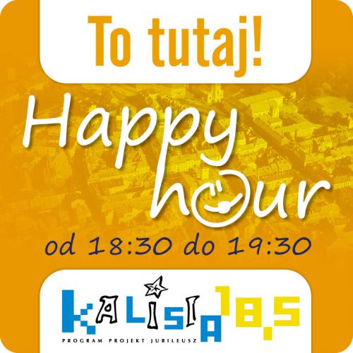 Co najmniej w 16 kaliskich kawiarniach i restauracjach obowiązywać będzie jubileuszowa „HAPPY HOUR KALISIA 18,5" - tyle lokali bowiem wyraziło chęć uczestniczenia w urodzinowej, kaliskiej akcji. Co to oznacza? Każdy - zarówno kaliszanin jak i przyjezdny, w specjalnie oznakowanych lokalach będzie mógł zamówić wybraną potrawę lub napój o nazwie "Kalisia".