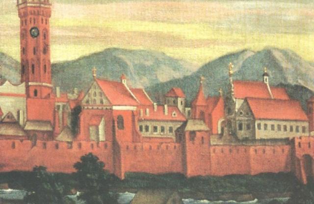 Panorama miasta od południa ze św. Paschalisem. Fragment obrazu Bonifacego Jatkowskiego z 1715 roku. Najstarszy wizerunek kolegiaty.