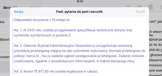 W związku z tym, redakcja Radia Centrum zadała pisemnie (wg wymogu obowiązującego w kaliskim ratuszu tylko tę stację) pytania mające wyjaśnić kilka kwestii związanych z realizacją umowy.